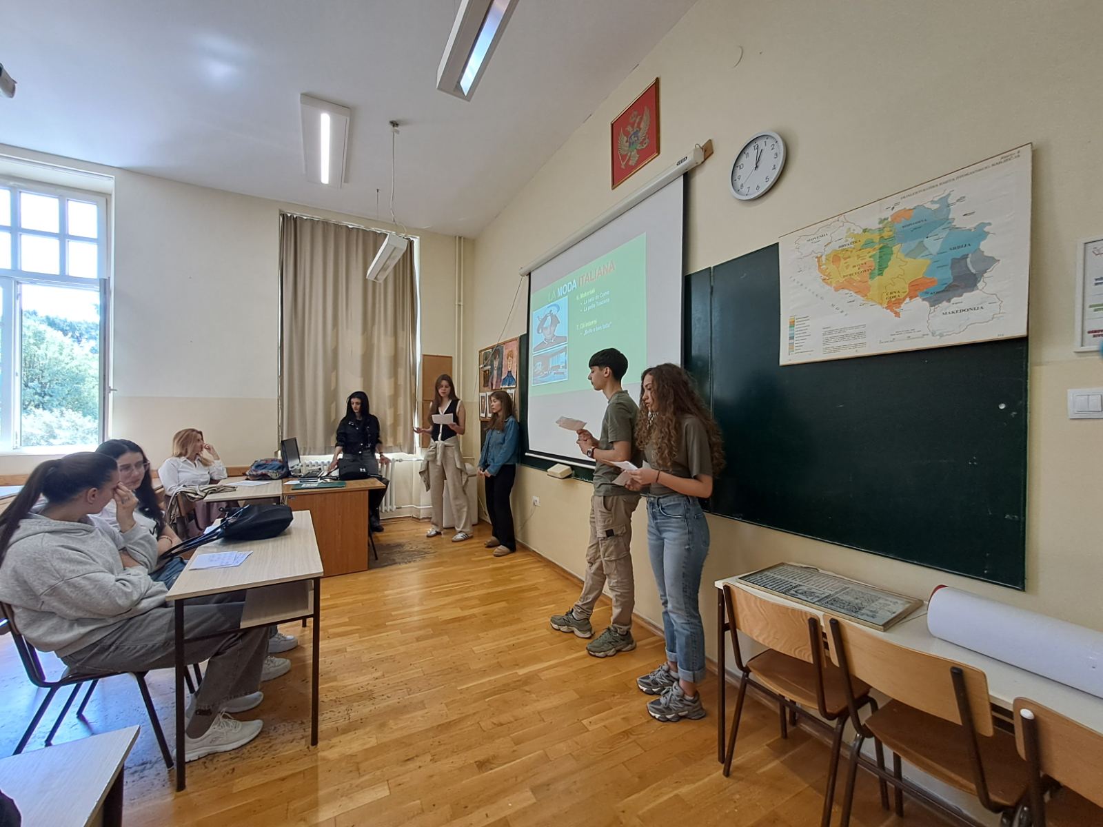 У петак, 17. априла 2026. године, професорке италијанског језика Марија Копитовић и Ивана Вујовић реализовале су јавни час у одјељењима I ф, III т и I е1 на тему „Made in Italy“.