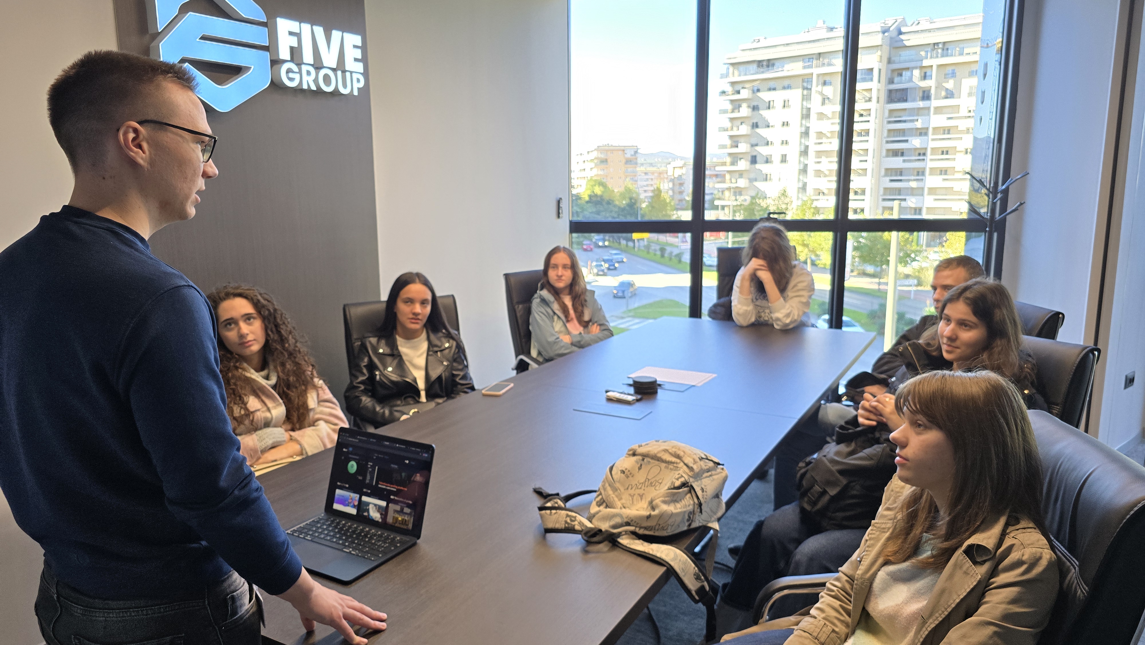 Prva stanica bila je kompanija Five Group, jedna od vodećih crnogorskih IT kompanija koja se bavi razvojem softverskih rješenja, digitalnom transformacijom, razvojem mobilnih i web aplikacija, IT konsaltingom i naprednim rješenjima u oblasti automatizacije poslovnih procesa. Tokom obilaska učenici su imali priliku da se upoznaju sa načinom rada timova, korporativnom kulturom, metodologijama razvoja softvera i mogućnostima karijere u domaćem IT sektoru.