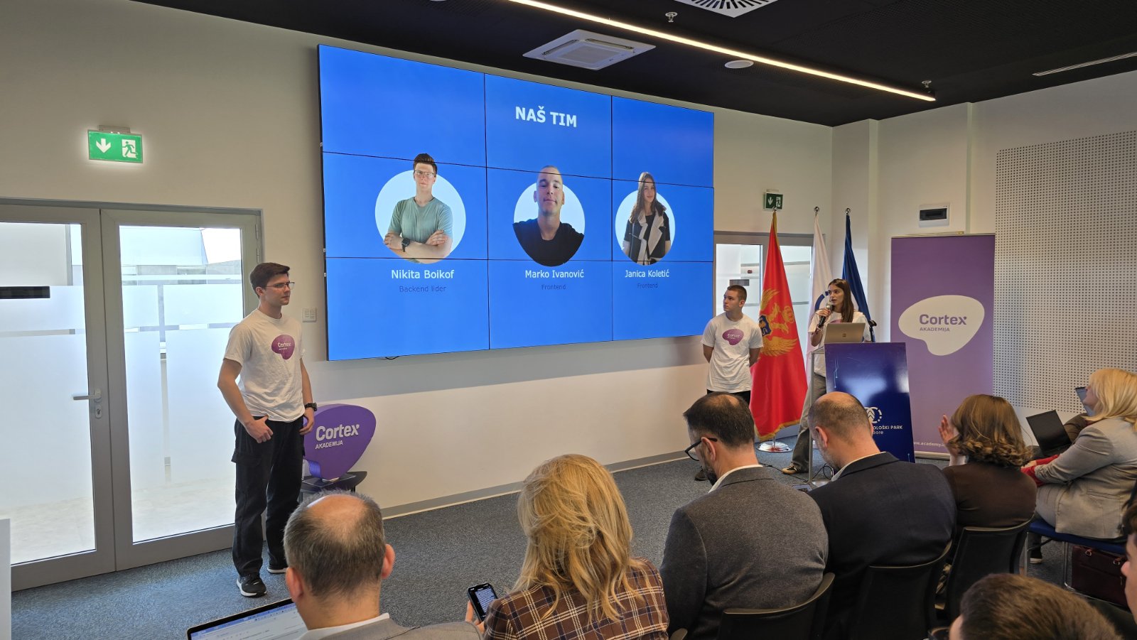 Završno takmičenje Cortex akademije za srednjoškolce, održano je u petak, 10. oktobra, u Naučno-tehnološkom parku u Podgorici. Na takmičenju su učestvovali srednjoškolci iz Podgorice, Nikšića i Berana, podijeljeni u četiri tima, koji su predstavili svoja rješenja takmičarskog zadatka na kojem su radili prethodne tri sedmice.